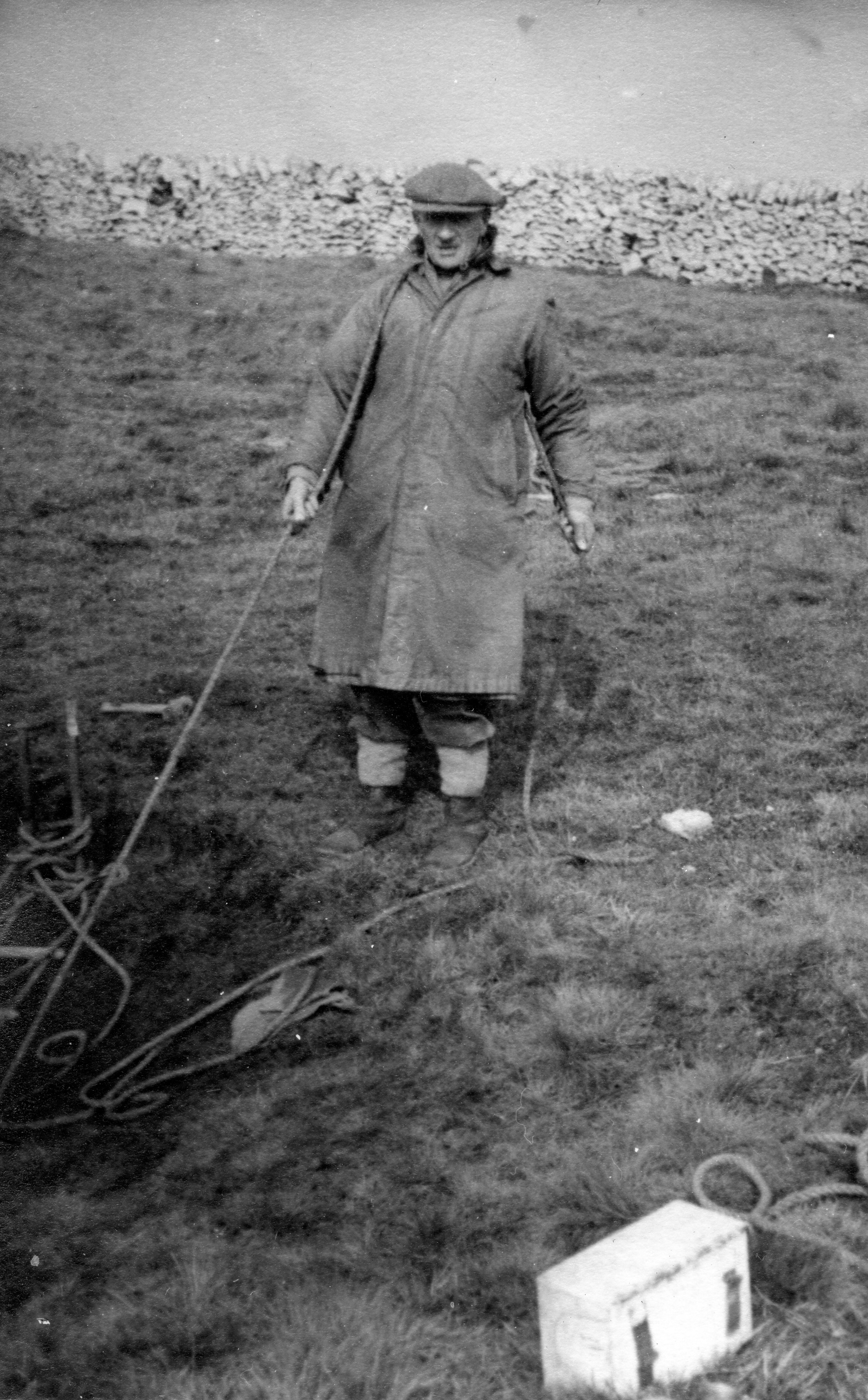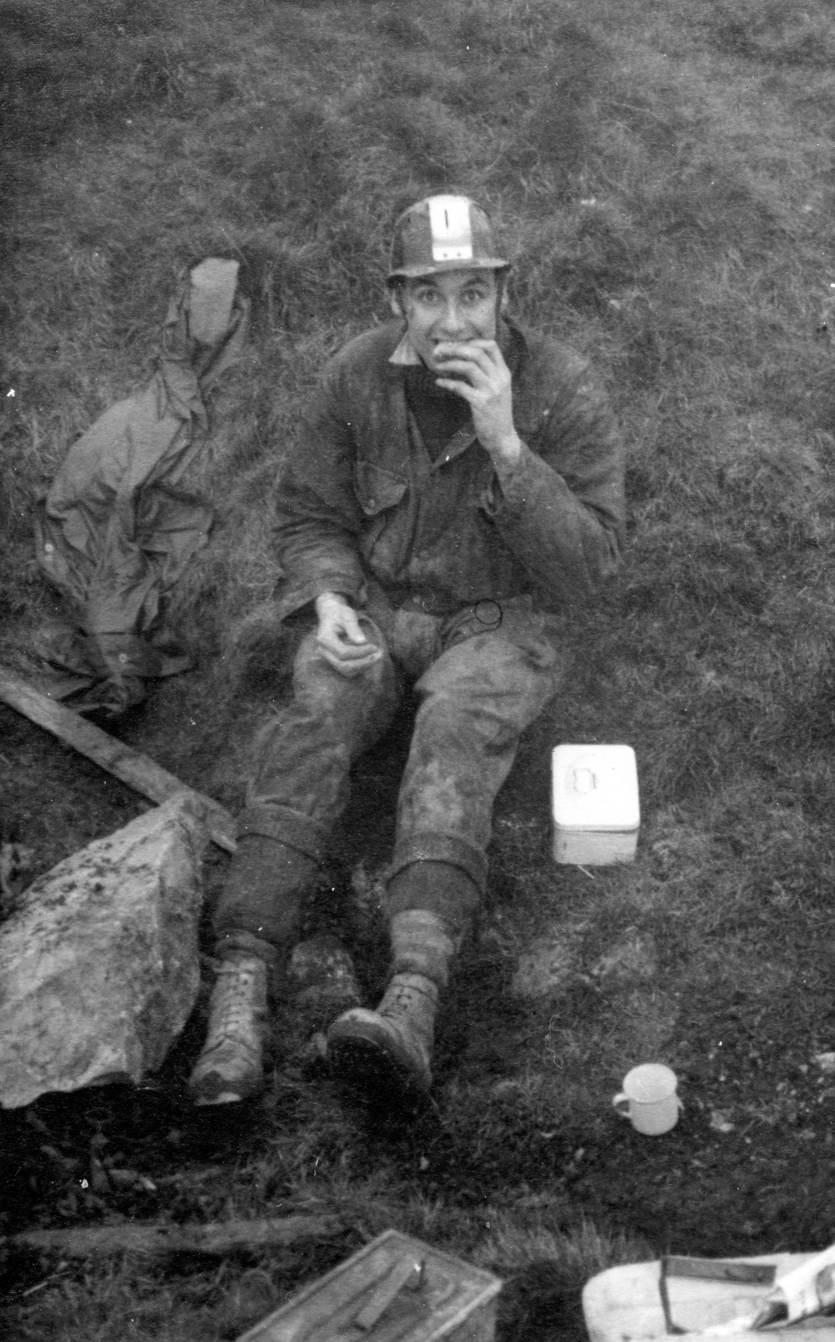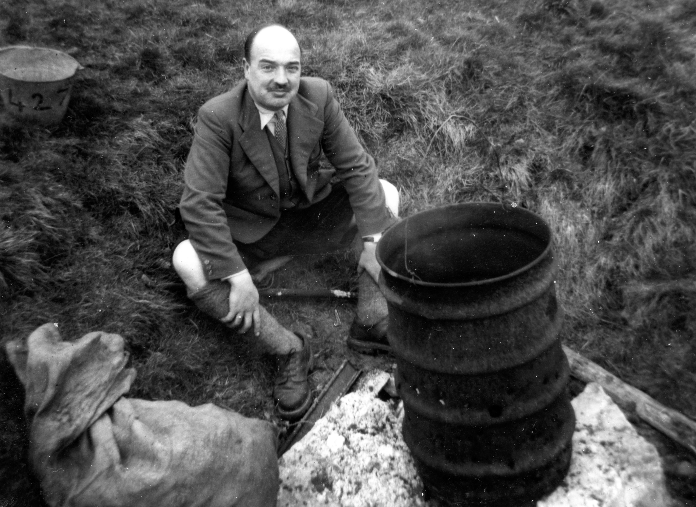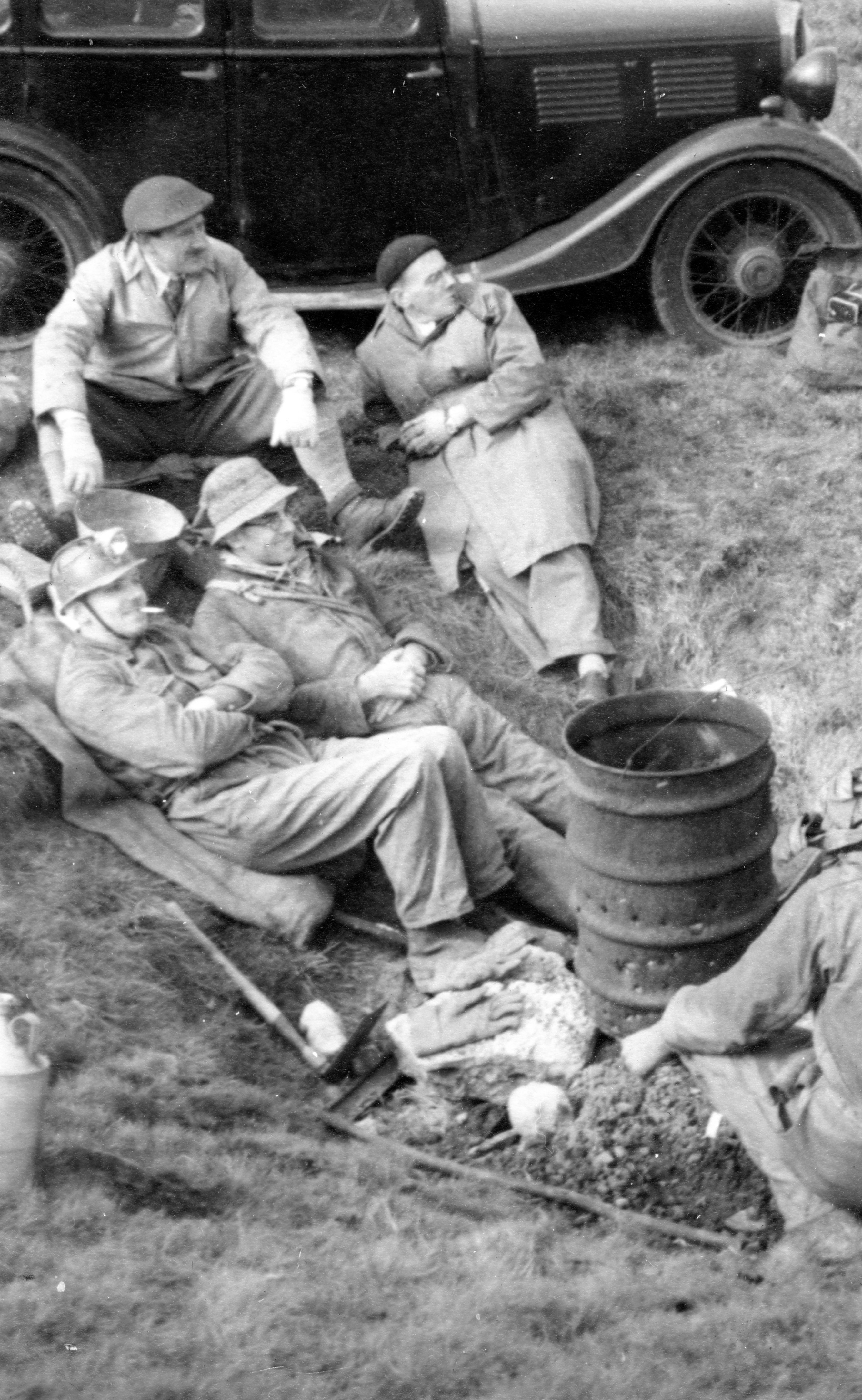 The hole being laddered, Davies went right to the bottom to give a report on the choke; Barnett stayed at the 100 feet stage and Pembury went down to him with the telephone, and work was started. Chantry came up for an hour or two and Sissons, Hide and Haythornthwaite arrived to strengthen the top party. Unfortunately, both Colley and Chantry had to leave early, but during their short visit they managed to burn nearly all the coke intended to last the whole day. Work went on all day, with people constantly either coming up or going down, Davies Carr, Pembury and Tiptaft all getting right to the bottom and doing useful work.