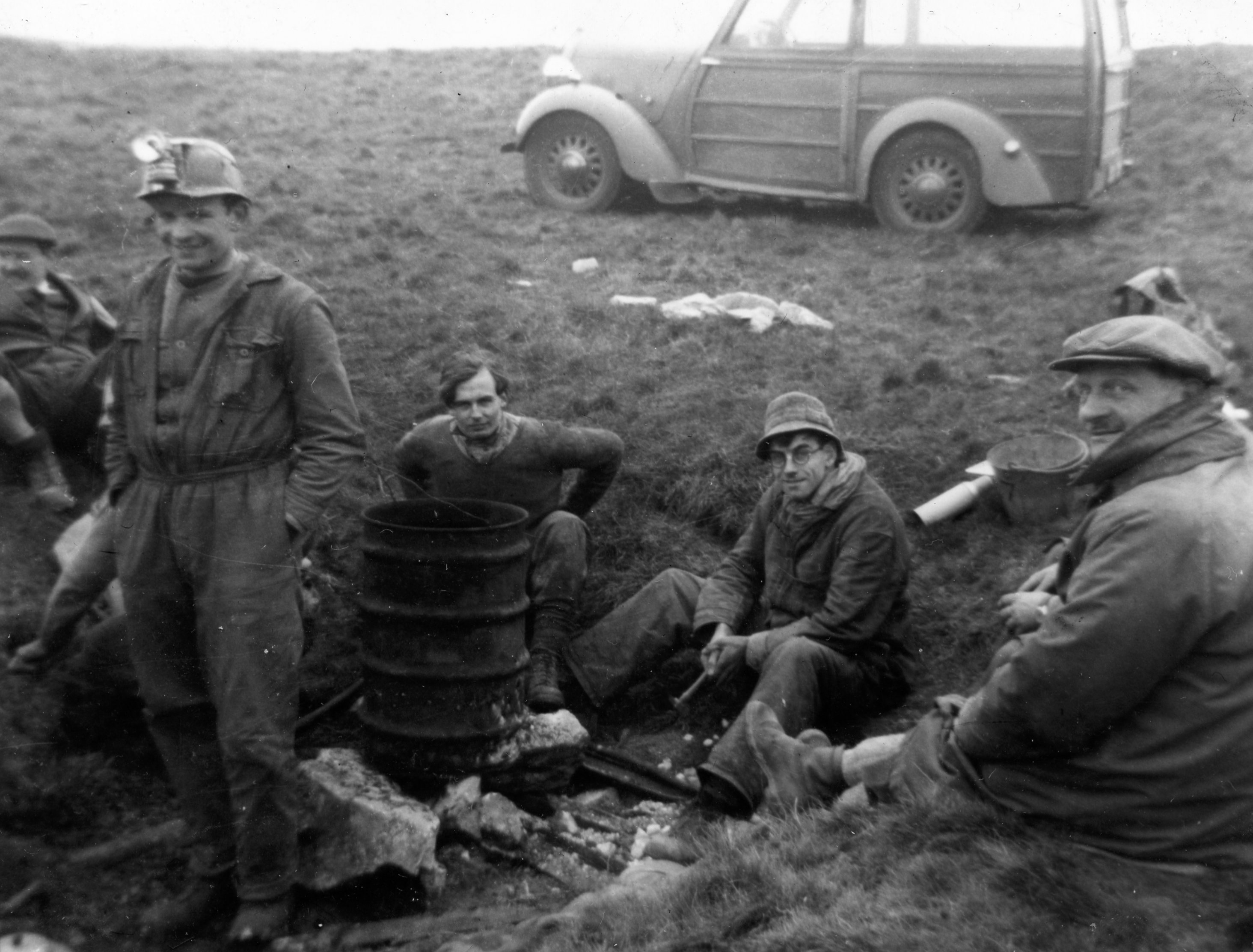 The elements were not at all in keeping with the first morning of British Summer Time when the Leader arrived at the hole with Carr, Pembury and Tiptaft. Although they were half an hour late, being the only members who had seen fit to conform with civilized practice, they were still the first to arrive. Davies arrived a little later and whilst the Leader and Carr went off in search of a missing guest, who never turned up, a start was made at laddering the hole. On the Leader’s return, he found Horner had arrived and was assisting on top; Barnett also, who was laddering, helped by Davies. Colley arrived with Finch and the brazier, newly lighted, was put under his care and was soon aglow from top to bottom.